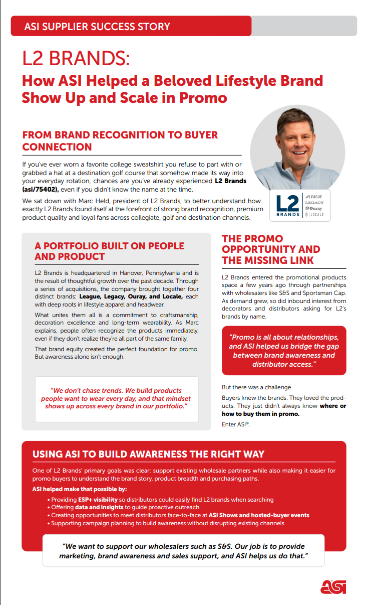 Many of you may know League(R), a branch of the L2 Brands. League is the supplier of many household favorite sweatshirts, hats, sweatpants, and apparel. L2 Brands is making and effort to not only put all their brands together under one umbrella, but also change gears to being a household name, no matter what other branding is being showcased. See how L2Brands is relying on quality, consistency, and drive to build a better brand.