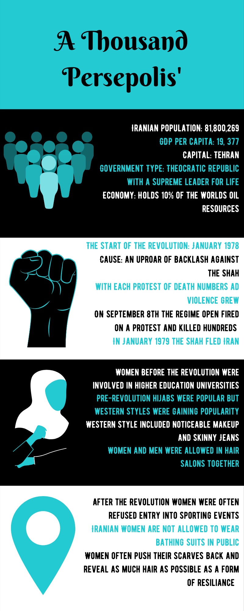 This was a mock social campaign based on the book Persepolis. The idea of the campaign was to bring feminine and hygiene products to Iran (circa pre-Covid 2020). This campaign was created during 2020 and was based on the political climate at the time. The images were created to motivate women of privilege in countries like America, Canada, and varying European countries to get involved and donate. The name “A Thousand Persepolis’” for the campaign, comes from the idea that Persepolis is not the only girl who has had to or will have to change her entire life under the current Iranian regime. It is a campaign focused on female empowerment and human liberation. With that being said it’s goal is not to revolutionize women’s rights in Iran as that was a losing task for the political climate at the time. The goal was to meet women where they were at and do what was possible to progress women’s right with what was available.